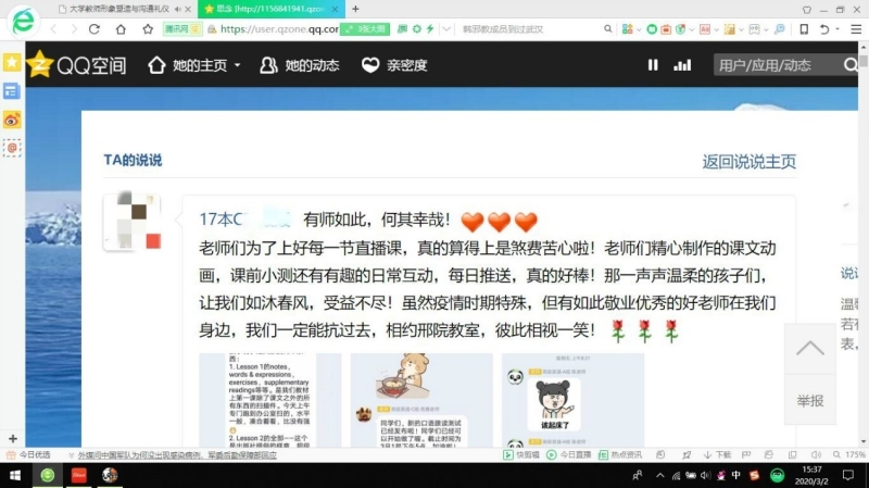 在学校领导和相关职能部门的正确领导下,外国语学院领导班子周密妥善安排,全体教职员工积极认真配合,教学管理人员热情主动服务,我院的在线教学工作取得了突出的成绩,学生们纷纷为老师们的工作点赞。