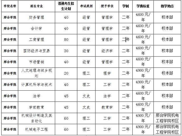 8.专业办学地址:除机械电子工程、机械设计制造及其自动化专业在邢台学院机电工程学院校区办学外,其余本科专业均在邢台学院办学。
